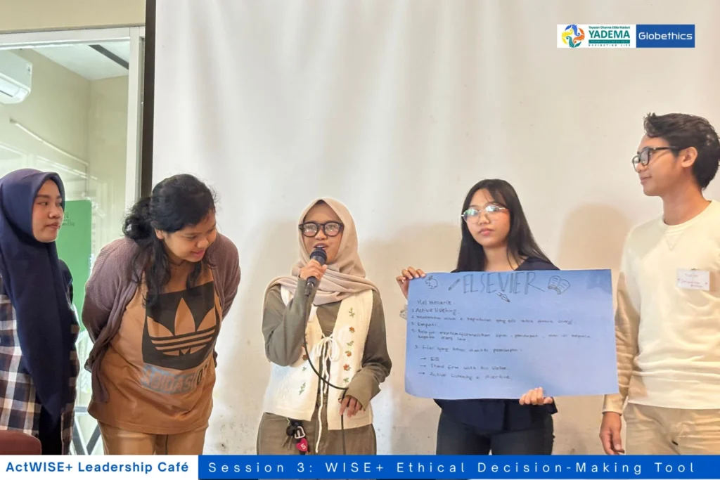 Sesi ini hadir dengan energi baru! Yup, selaras dengan tajuk “WISE+ Ethical Decision-Making Tool”, para peserta mulai berkenalan dengan kerangka pengambilan keputusan etis WISE+ yang dikembangkan oleh YADEMA.